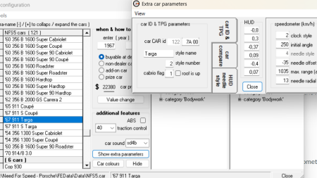 It replaces the original 901.crp and 901.tpg - So no savegame needed. The only thing you need to change is, set the cabriolet flag to 1 in your nfs5.car file using the NFS5 Carparts Editor for the '67 911 Targa (See screenshot). Otherwise this will not work correctly.