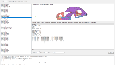 Automatic TPG Detection - if you name your car parts e.g. 0100_Body in Z-Mod, export as CRP and open them in the Inspector, a dialogue will pop up offering you to map the parts accordingly to TPG-Slots. The resulting part will be "Body" with TPG slot 01 and variant 00. 1301_WheelFront will automatically become WheelFront with TPG 13/01. This allows you to fully utilize the TPG system for meshes. The slots can still be altered manually and also associated with motion index for Hoods, Doors, etc. - Should be self-explanatory. The automatic motion index association by Z-Mod will not understand this, you have to manually assign which part is a hood, trunk, door, etc. This gives you the opportunity to e.g. create popup headlights.