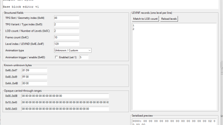 amount of animation frames, tpg slots and some more.