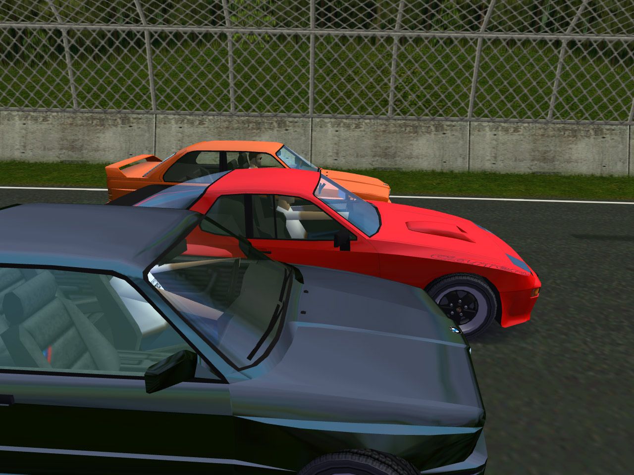 .....and the Porsche is squeezed in between two E30s, neck and neck. ;)