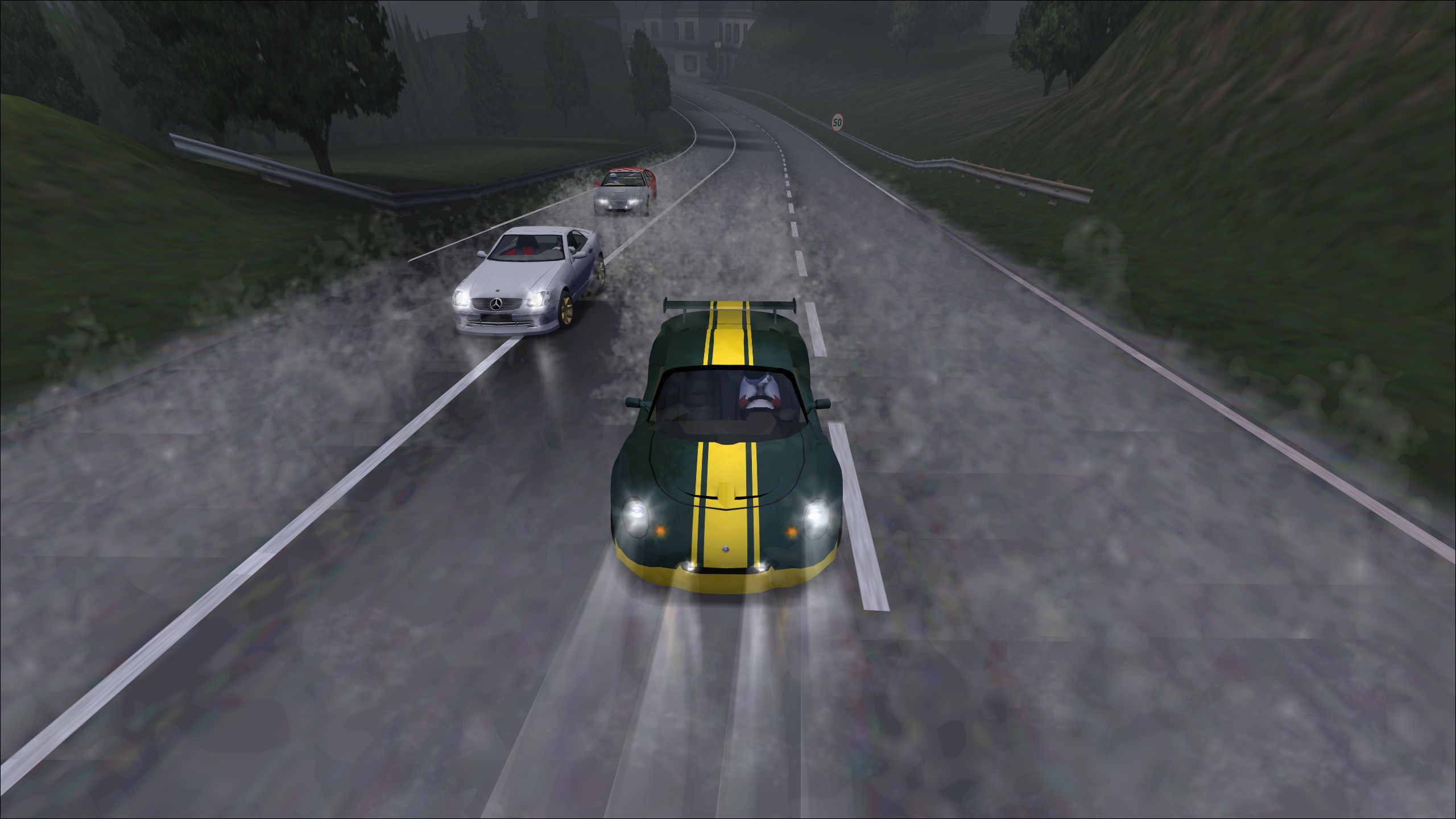 The lighting of AJ_Lethal's Landstrasse EX with weather on and the dark green color make the Elise less shiny than usual. Racing stripes tend to make cars feel faster than usual.
