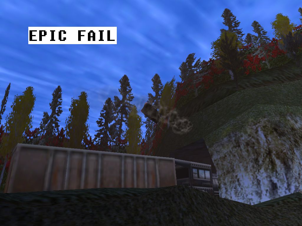 Not one of my best screens, and it's a repost... hard to see, but the Caprice just got owned by the train... and it's flying in the air.